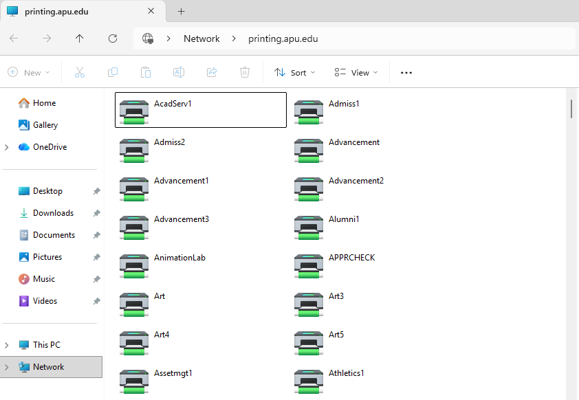 Note: This guide is for APU-issued Windows devices only. Personal devices are unable to connect to university printers.